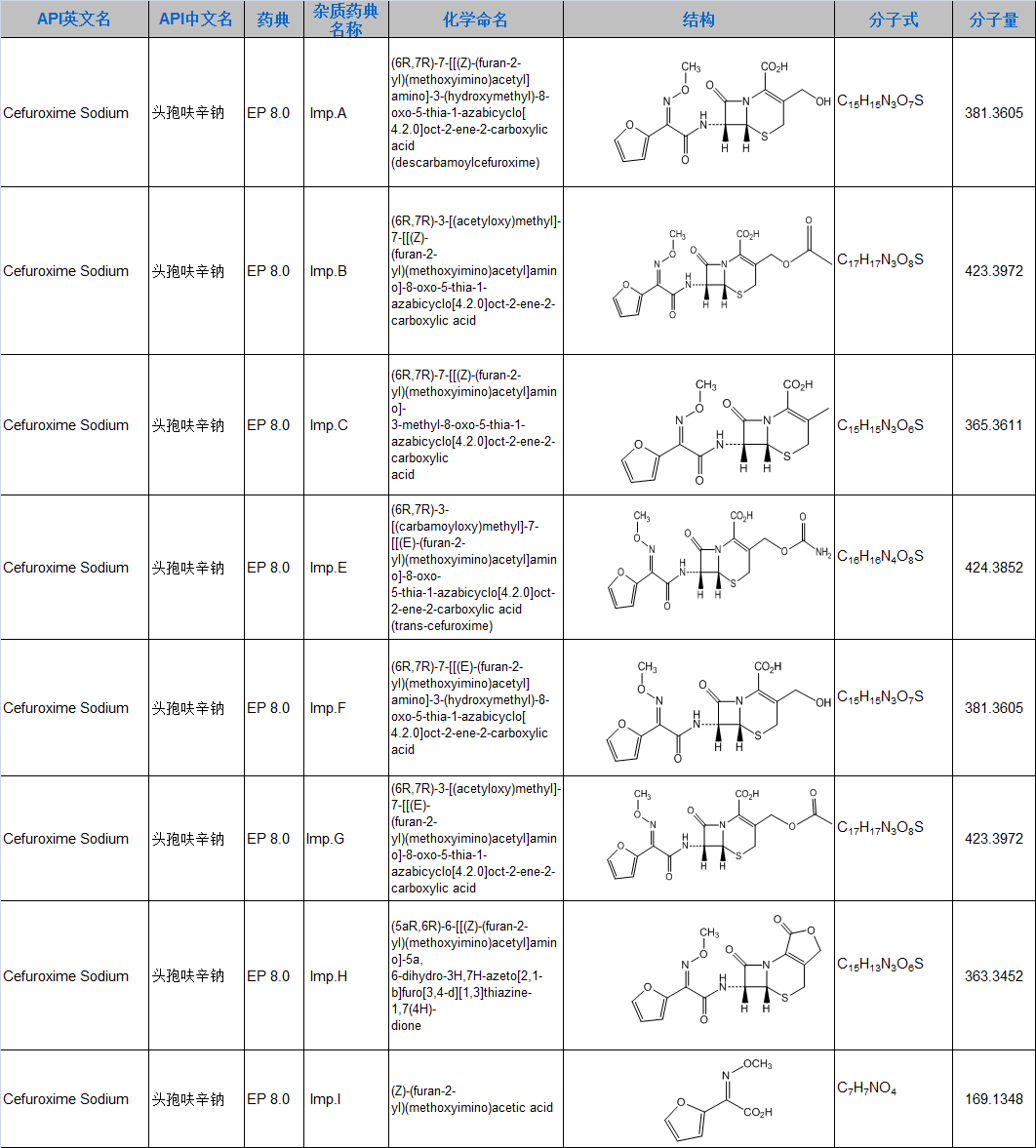 英文名 5-Thia-1-azabicyclo[4.2.0]oct-2-ene-2-carboxylic acid, 7-[[(2Z)-2-(2-furanyl)-2-(methoxyimino)acetyl]amino]-3-methyl-8-oxo-, (6R,7R)-