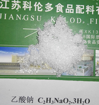 五、性狀:結(jié)晶品(三水)為無色透明結(jié)晶或白色結(jié)晶粉末,無水物為白色結(jié)晶性粗粉或塊狀,無臭,稍有醋樣氣味。