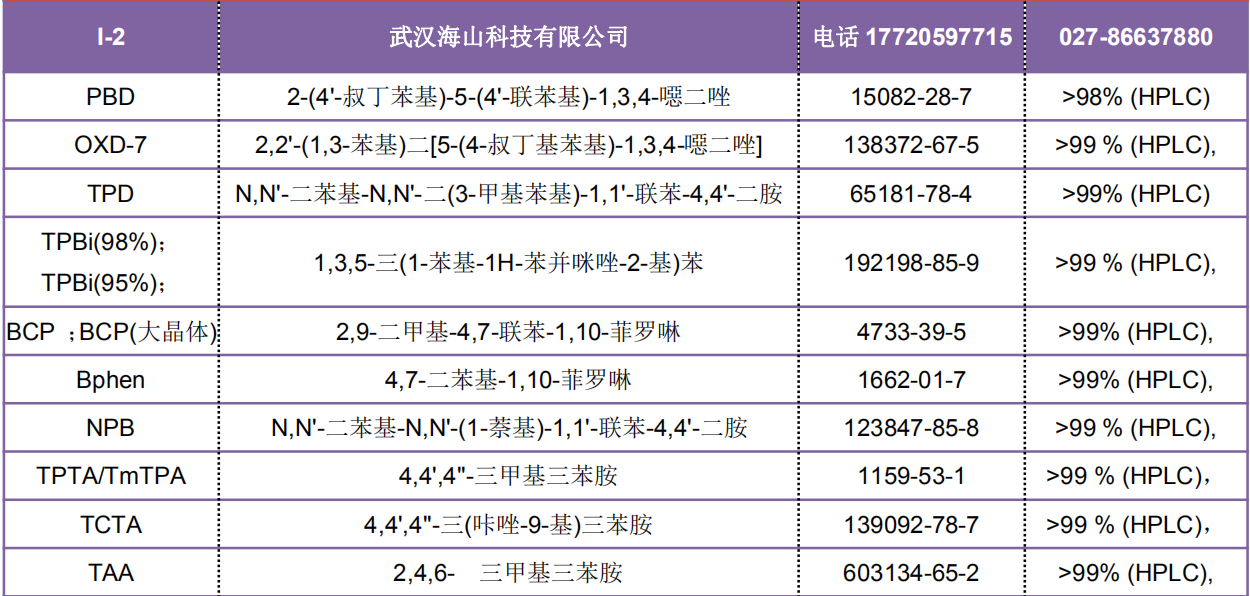 應(yīng)用: 空穴及電子傳輸材料。