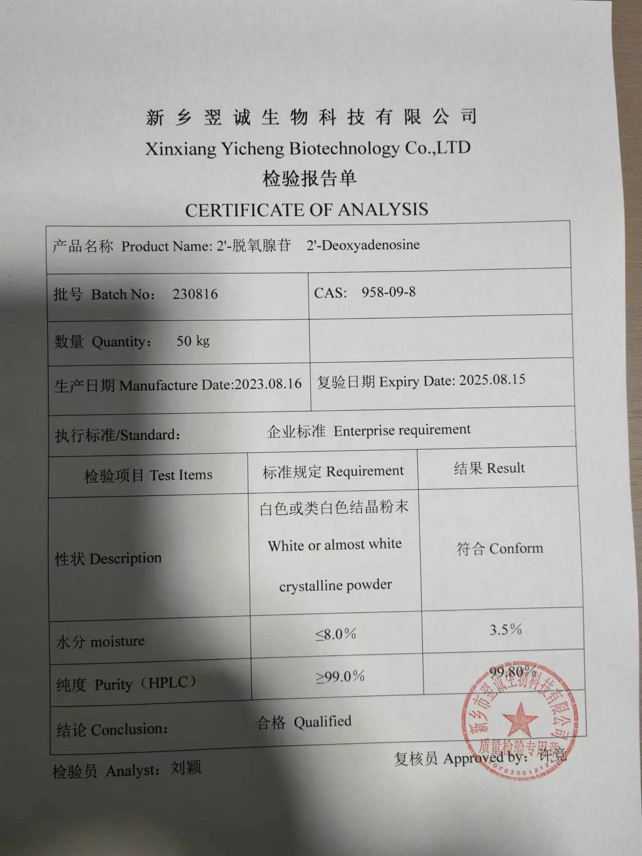 中文別名:去氧腺苷 9-Β-D-2ˊ-脫氧呋喃核苷 9-Β-D-2ˊ-脫氧呋喃核苷腺嘌呤