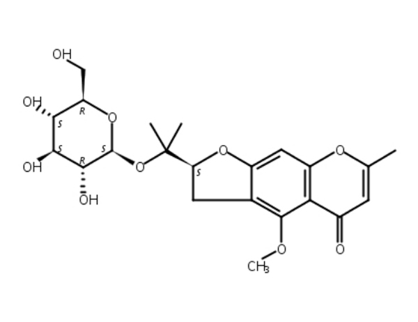 英文別稱:5H-Furo[3,2-g][1]benzopyran-5-one, 2-[1-(b-D-glucopyranosyloxy)-1-methylethyl]-2,3-dihydro-4-methoxy-7-methyl-, (S)-; (2S)-2-[1-(b-D-Glucopyranosyloxy)-1-methylethyl]-2,3-dihydro-4-methoxy-7-methyl-5H-furo[3,2-g][1]benzopyran-5-one; 4''''O--b-D-Glucosyl-5-O-methylvisamminol; 5-O-Methylvisammioside