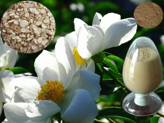白芍提取物 [產品名稱]:芍藥提取物Paeoniflorin [分子式和分子量]:C23H28O11 480.45 [ CAS# ]:23180-57-6 [產品來源]:白芍提取物來源于毛莨科植物芍藥paeonia lactiflora pall.的根。 赤芍提取物來源于毛莨科植物芍藥paeonia lactiflora pall.或川赤芍paeonia veitchii lynch的根 [理化性質]:吸濕性無定形粉末, [α]16d-12.8°(c=416,甲醇),四乙酸酯為無色針狀結晶, 熔點(m.p.)196℃。 [產品外觀]:本品為棕色粉末 [產品規格]:45%芍藥苷 [藥理作用]: 芍藥甙對離體腸管,在位胃運動和子宮平滑肌均表現抑制,并能拮抗催產素所引起的收縮。芍藥甙有顯著的鎮痛效果。芍藥的浸膏能拮抗士的寧引起的驚厥。白芍煎劑對某些致病性細菌和真菌有抑制作用。芍藥甙對正常體溫有降溫作用,并能抑制血小板聚集作用。 [臨床應用]:用于冠心病的治療;用于老年性疾病,增強體質與免疫功能、抗炎止咳、祛痰平喘等方面,尤其是老年慢性呼吸道疾病的治療中可作輔助藥物。 [功效用途]: 1、 醫藥行業: 廣泛用于治療風濕性關節炎、冠心病、婦科疾病。 2. 化妝品/日化產品行業: 用于化妝品中治療粉刺, 并延緩機體組織的衰老。加入洗發水中,用作頭發生長調理劑.