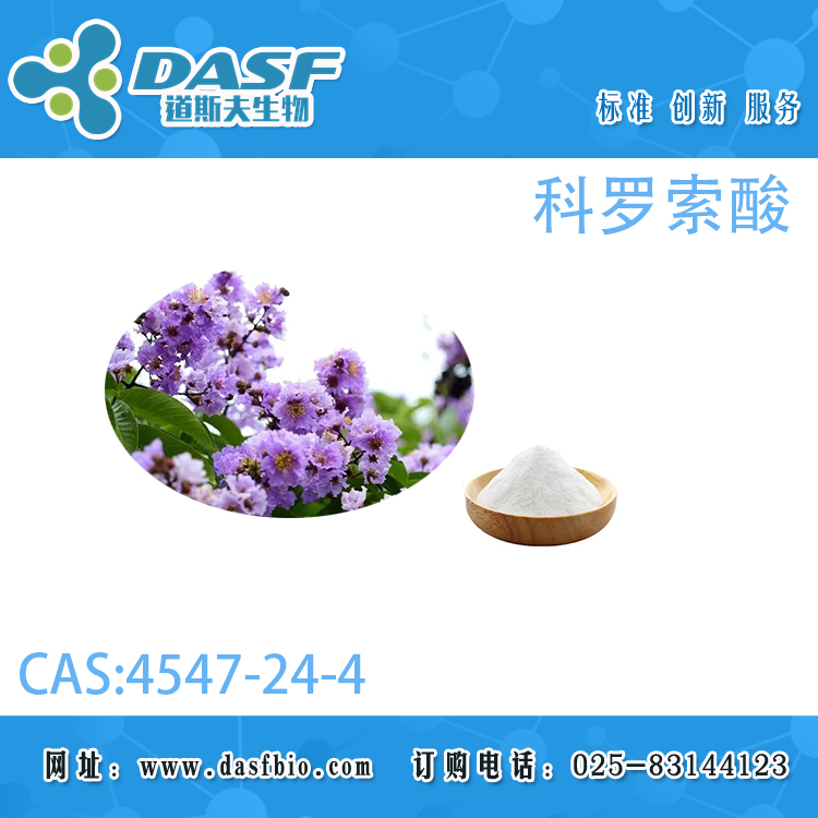 中文同義詞: 2-alpha-羥基熊果酸;科羅索酸;巴拉巴提取物;2Α-羥基熊果酸;科羅索酸(標準品);科羅索酸(枇杷葉提取物);科羅索酸1%-10%