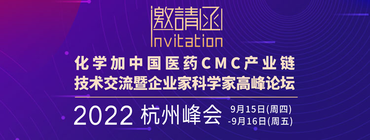 化學加2022杭州峰會:第三屆中國醫藥CMC產業鏈技術交流暨企業家科學家高峰論