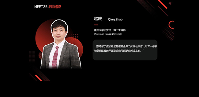 趙慶于2017 年獲南開大學無機化學博士學位,師從陳軍院士。后赴美國康奈爾大學從事博士后研究,2021年全職加入南開大學。主辦方表示,他構建了幾類安全穩定的高能金屬二次電池界面,為下一代電池儲能體系的界面和安全問題提供了解決方案。