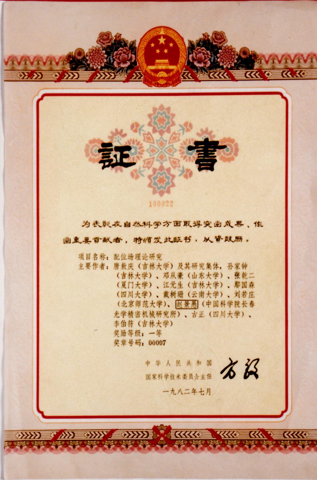 圖18:唐敖慶等人獲1982年國家自然科學獎一等獎證書