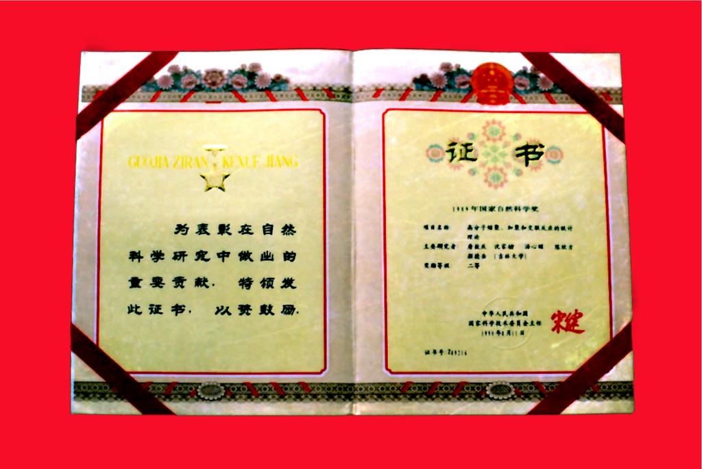 圖23:唐敖慶等人獲2000年國家自然科學獎二等獎證書