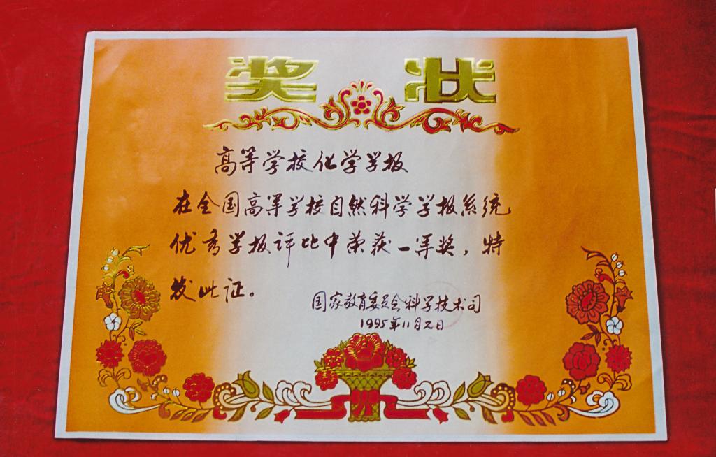 在唐敖慶的領導下,《學報》以其載文學術水平較高、社會效益好、編輯出版質量高、出版周期短,逐漸受到了國內外學術界的認可,不斷向躋身國際先進科技期刊的目標邁進。從1995年起,《學報》被國際著名檢索系統ISI數據庫和SCIE收錄,從1999年起被SCI收錄,《學報》成功地在國際上占據了一席之地。《學報》(中文版)在1995年教育部組織的全國高等學校自然科學系統優秀學報評比中榮獲一等獎,1997年中共中央宣傳部、新聞出版總署和國家科委組織的全國優秀科技期刊評比中榮獲一等獎,2001年被國家評為“雙高”(高知名度、高學術水平)科技期刊,并榮獲第一屆、第二屆、第三屆國家期刊獎,2006-2010年連續三屆榮獲“中國高校精品科技期刊”稱號, 2011年榮獲“第二屆中國出版政府獎期刊獎”,入選2021年度中國科技期刊卓越行動計劃。英文版《Chemical Research in Chinese Universities》作為最早被SCI數據庫收錄(1999年)的國內英文版科技期刊之一,創刊近40年來,逐步發展成為具有較高學術水平和國際影響力的期刊。目前被包括SCI, EI, SCOPUS, CSCD等在內的國內外20余家數據庫收錄,并連續多年榮獲“中國最具國際影響力學術期刊” “中國高校精品科技期刊”等獎項,為推動中國化學界的發展作出了巨大貢獻。