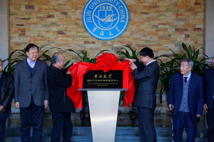 圖15:吉林大學(xué)超分子化學(xué)生物學(xué)研究中心揭牌儀式(左起:佟振合、段雪、張希、沈家驄)