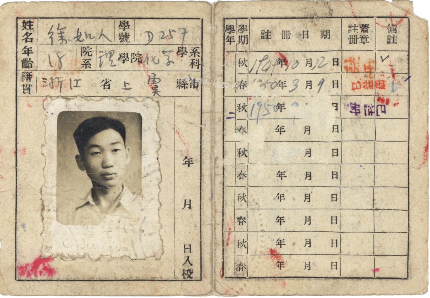 圖5:徐如人復旦大學學生證