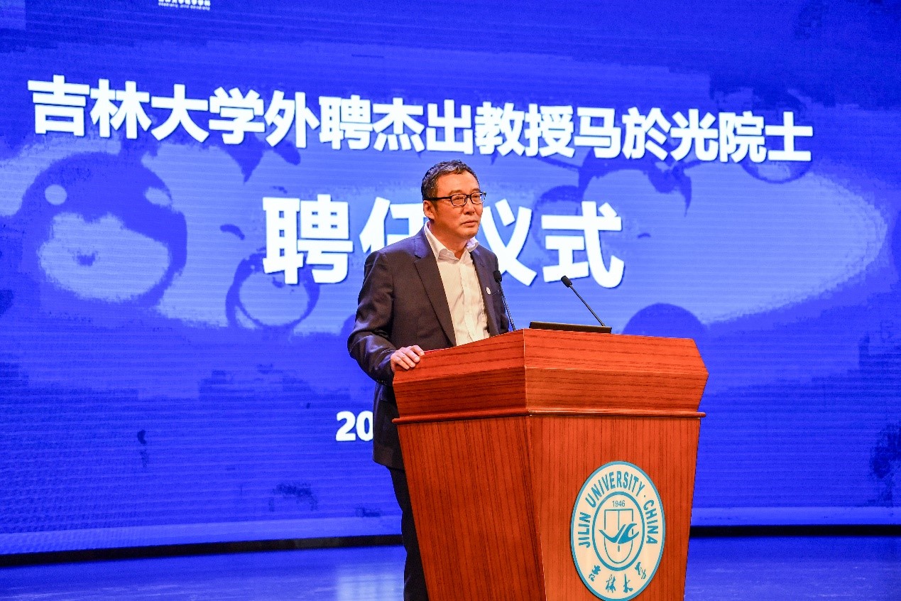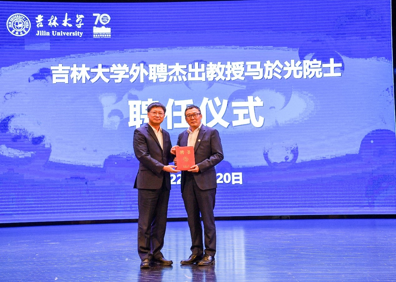 儀式上,蔡立東宣讀了《關于聘請馬於光為吉林大學外聘杰出教授的決定》。張希為馬於光院士佩戴校徽,頒發聘任證書。
