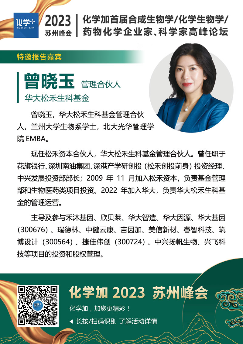 曾曉玉,華大松禾生科基金管理合伙人(圓桌對話嘉賓)