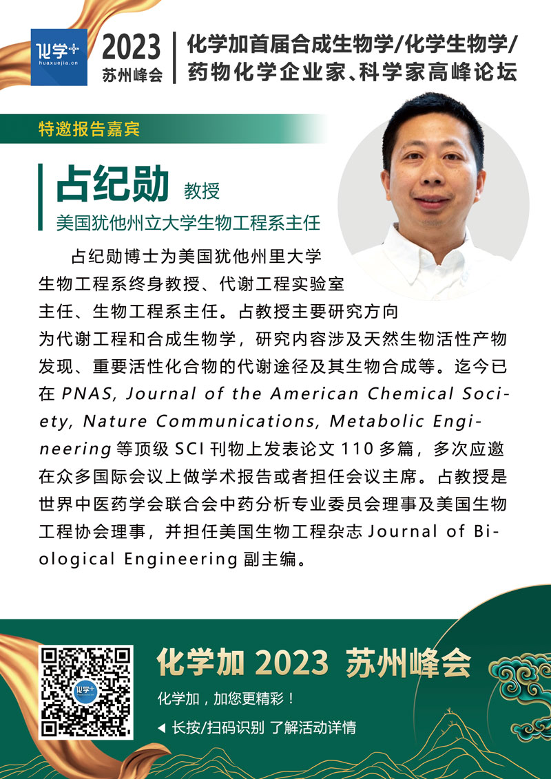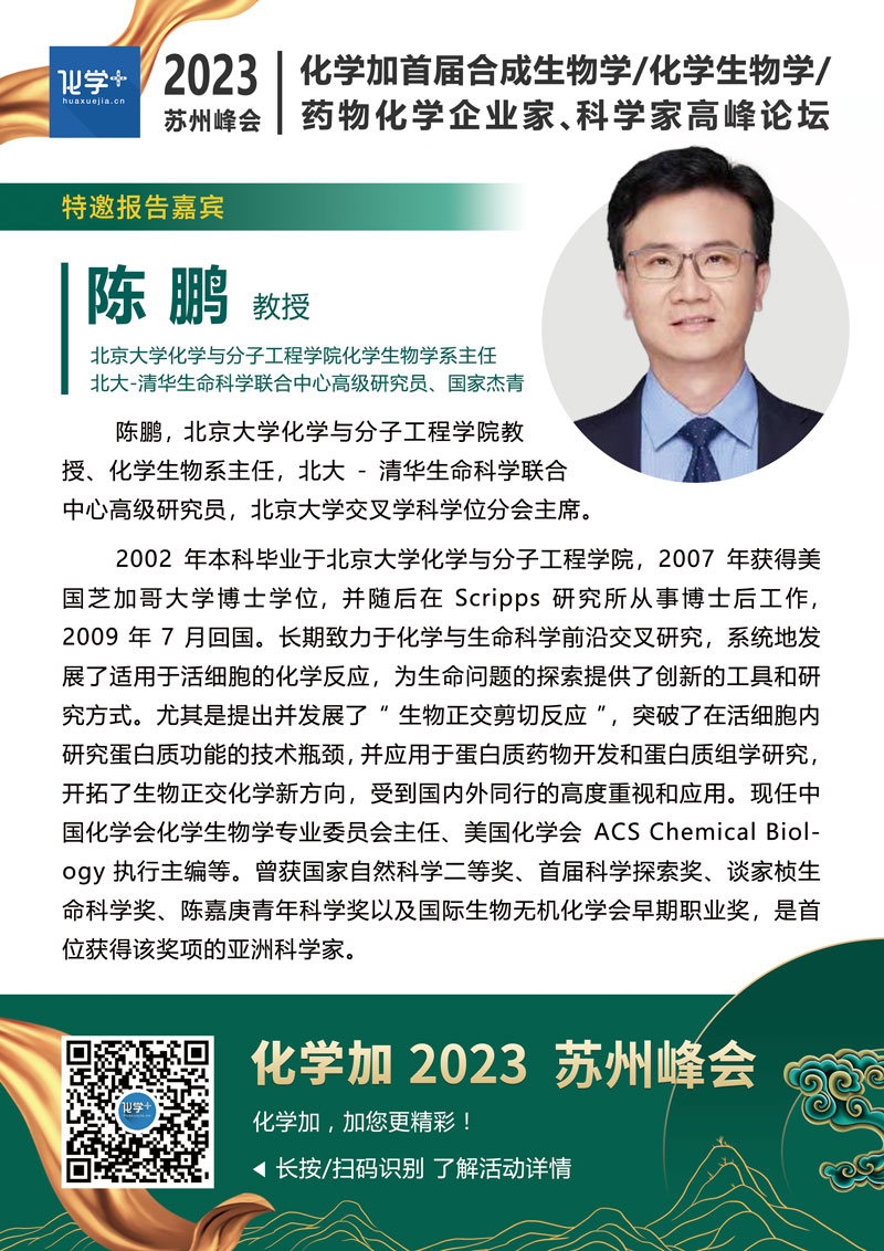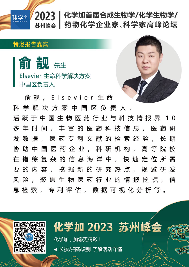 化學加2023蘇州峰會嘉賓簡介 | 首屆合成生物學/化學生物學/藥物化學企業家科學家高峰論壇