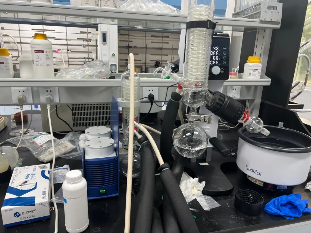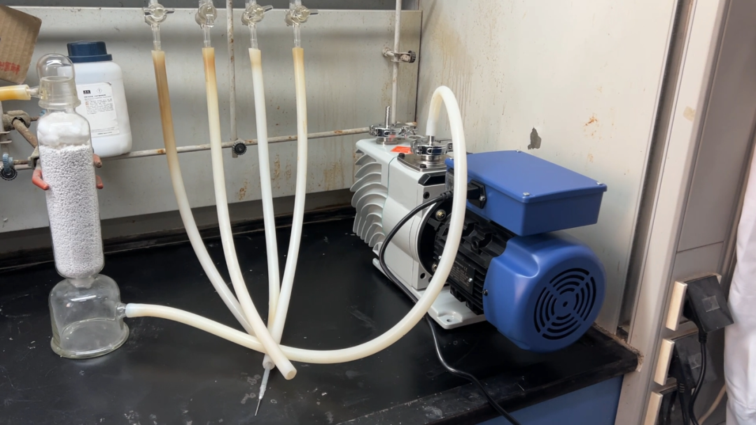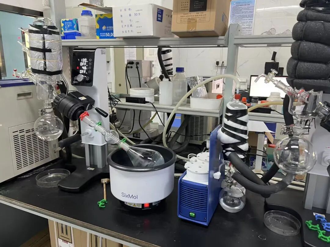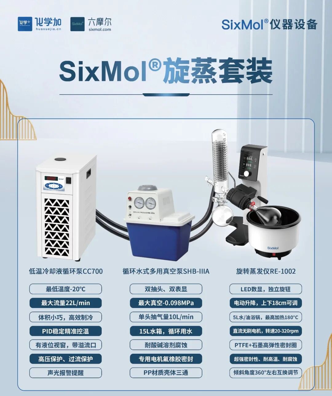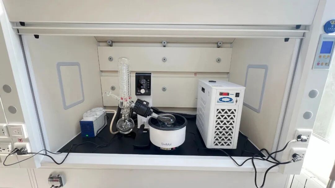 化學加SixMol?防腐蝕隔膜真空泵,搭配溶劑回收系統,真空泵的入口接有緩沖瓶,出口接有冷凝器可以二次冷凝,回收低沸點溶劑,有效減少環境危害,為您的實驗室安全保駕護航。