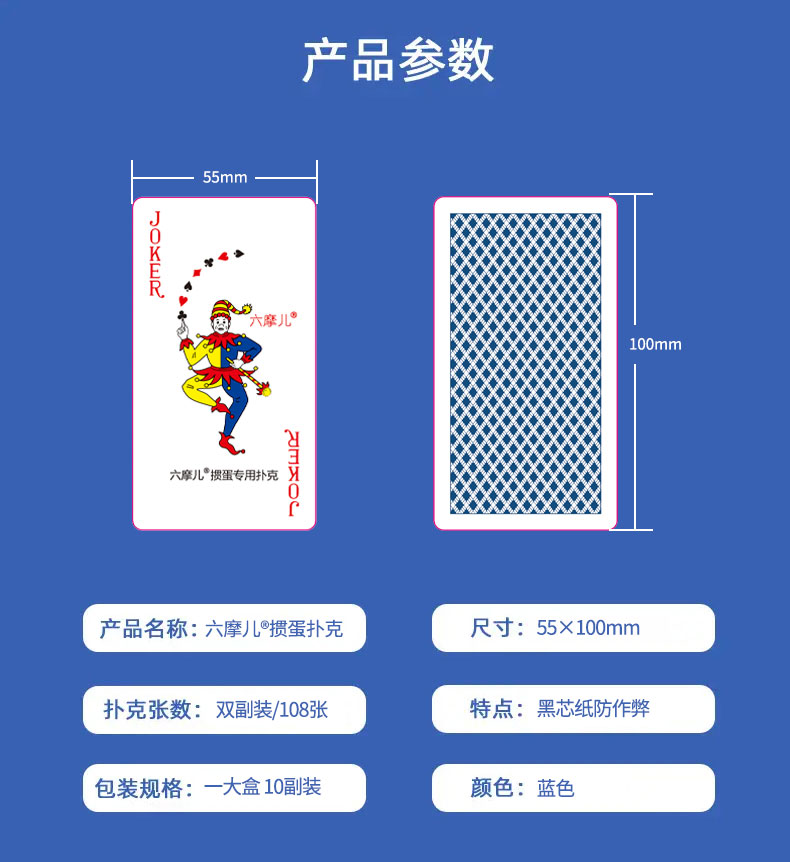 導讀:非工作時間適當的娛樂放松,是為了工作時間可以更好地專注于工作!歡迎體驗我們的“名牌”——六摩兒?摜蛋比賽專用高端撲克!完全不一樣的手感,不一樣的紙質!55*100mm創新尺寸,握牌更舒服。采用德國進口天花板級黑芯紙,空氣層壓紋工藝,環保油墨配方,平順柔韌不透光,清晰順滑耐用。
