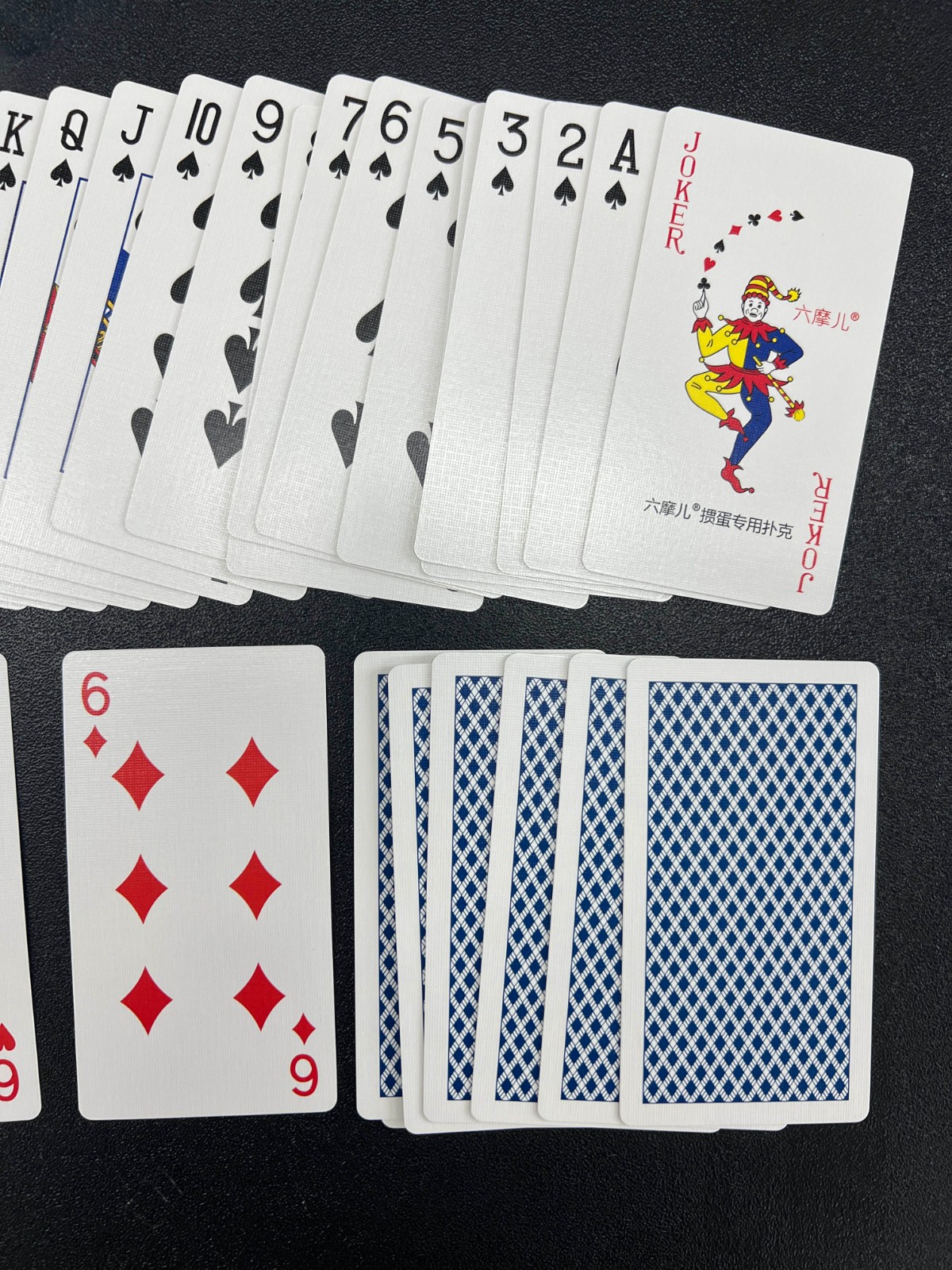 非工作時間適當的娛樂放松,是為了工作時間可以更好地專注于工作!歡迎體驗我們的“名牌”——六摩兒?摜蛋比賽專用高端撲克!完全不一樣的手感,不一樣的紙質!55*100mm創新尺寸,握牌更舒服。采用德國進口天花板級黑芯紙,空氣層壓紋工藝,環保油墨配方,平順柔韌不透光,清晰順滑耐用。