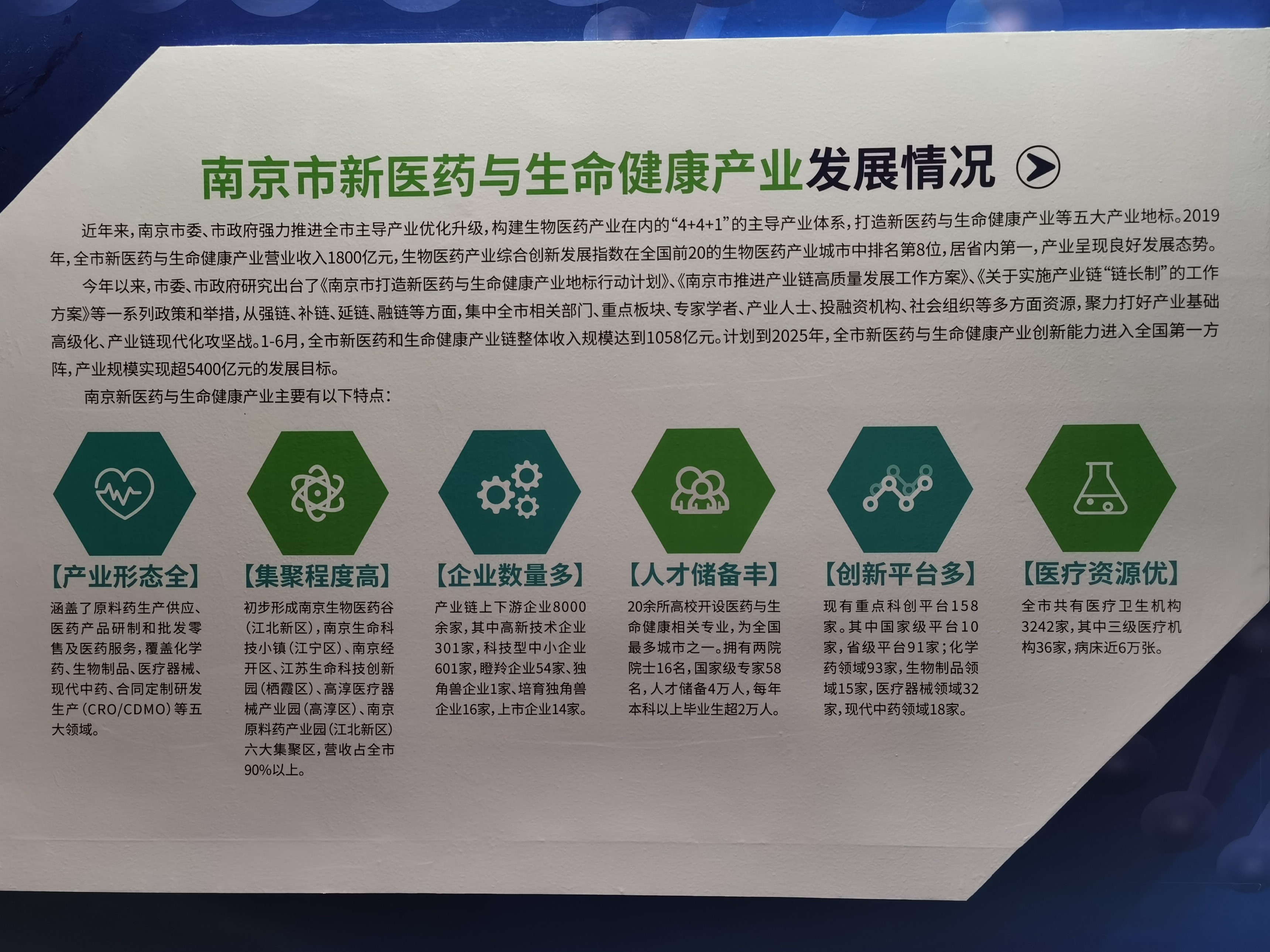 今年8月發布的《南京打造新醫藥與生命健康產業地標行動計劃》,提出如下產業發展目標:到2022年,全市新醫藥與生命健康產業規模超3200億元,生物醫藥產業創新力綜合排名進入全國前五;到2025年,全市新醫藥與生命健康產業規模超5400億元,生物醫藥產業創新力綜合排名進入全國前三。
