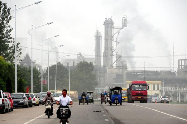 2013年9月13日,山東省臨沂市郯城縣一家化工企業在排放氣體。環保風暴刮起4個月后,工業重鎮面臨如何實現“軟著陸”的大考。