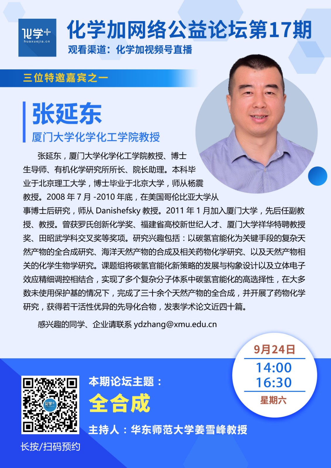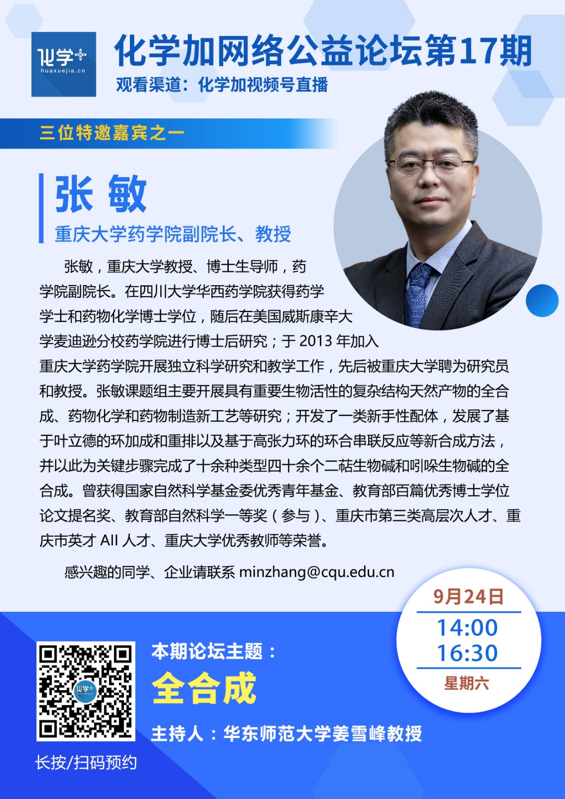 關注“化學加”微信公眾號、化學加視頻號,預約準時收看直播。