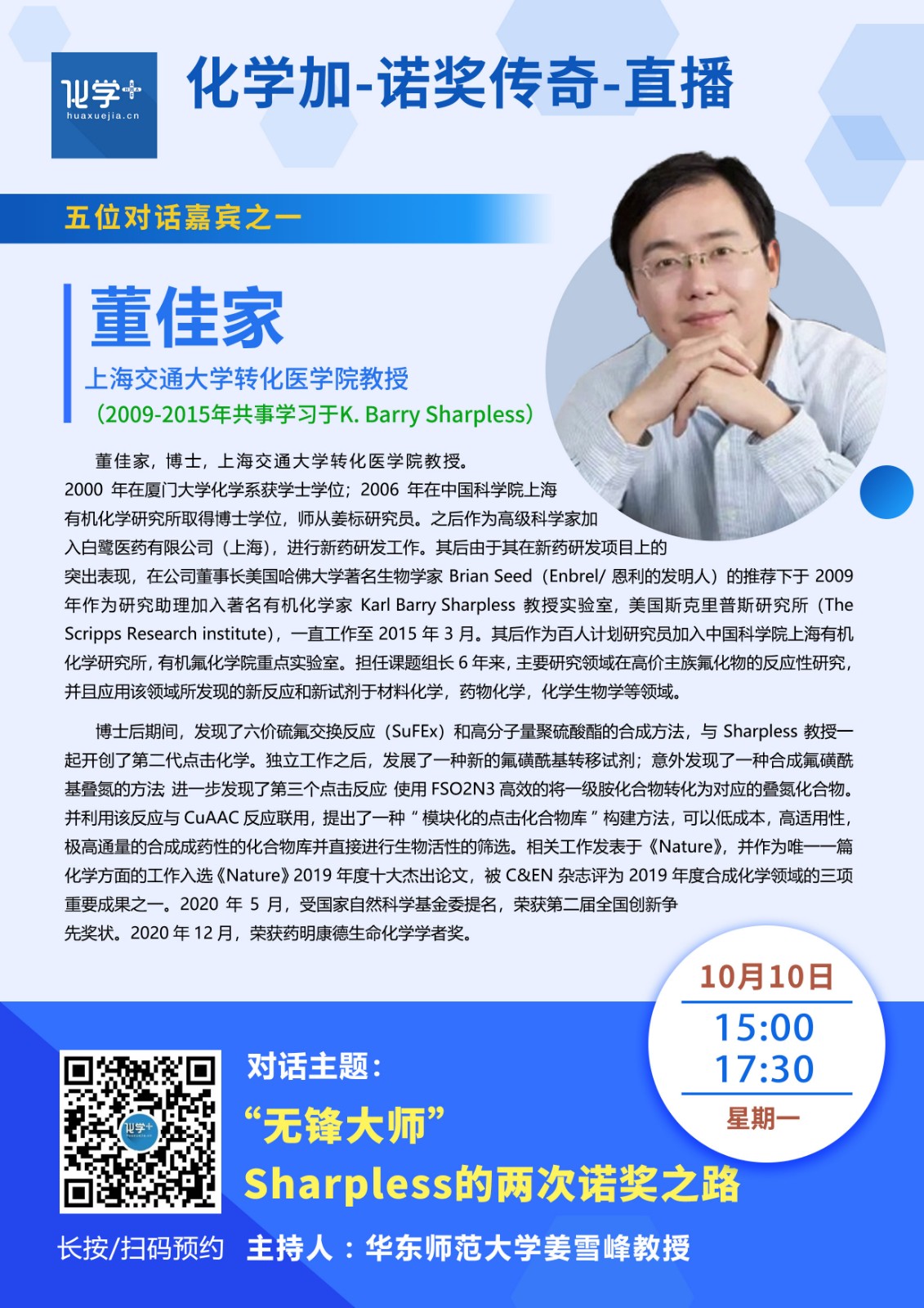 董佳家 上海交通大學轉化醫學院教授(2009-2015年共事學習于K. Barry Sharpless)
