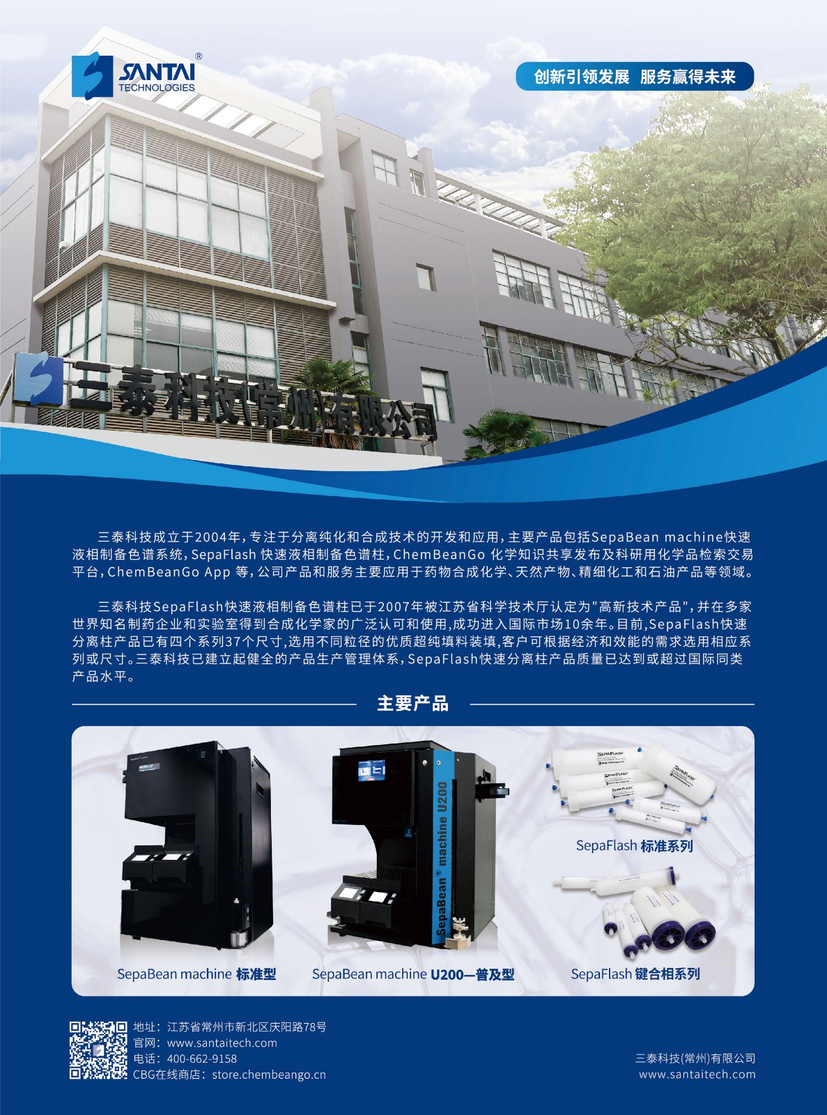 三泰科技成立于2004年,專注于分離純化和合成技術的開發和應用,主要產品包括SepaBean machine快速液相制備色譜系統, SepaFlash 快速液相制備色譜柱,ChemBeanGo化學知識共享發布及科研用化學品檢索交易平臺, ChemBeanGo App等,公司產品和服務主要應用于藥物合成化學、天然產物、精細化工和石油產品等領域。