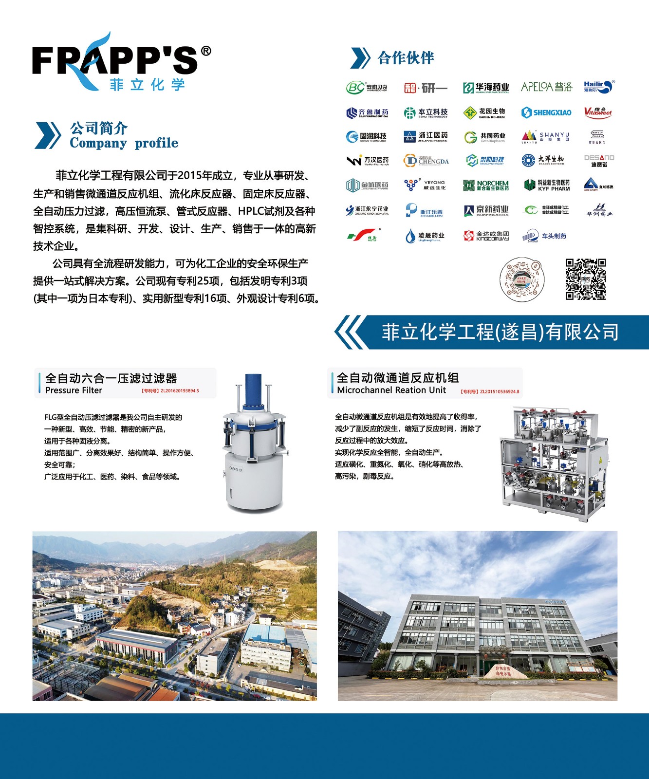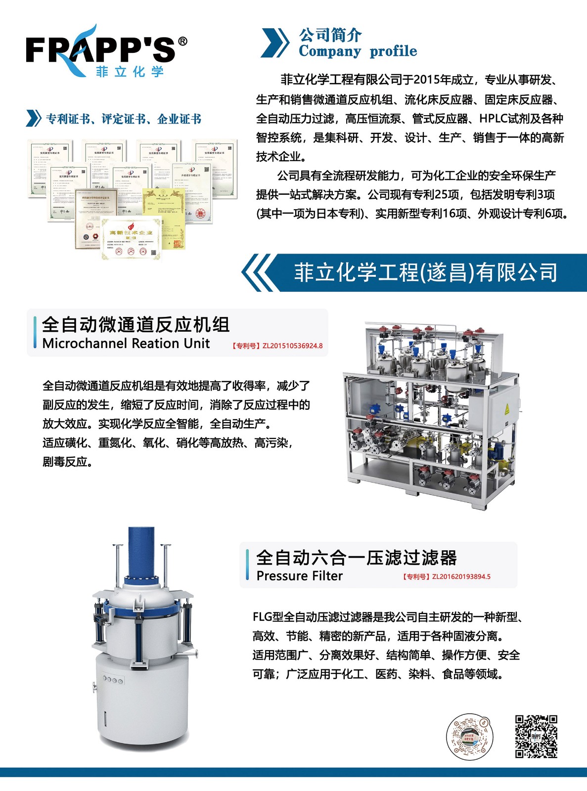 菲立化學——微通道反應機組、流化床反應器、固定床反應器、全自動壓力過濾,高壓恒流泵、管式反應器、HPLC試劑及各種智控系統