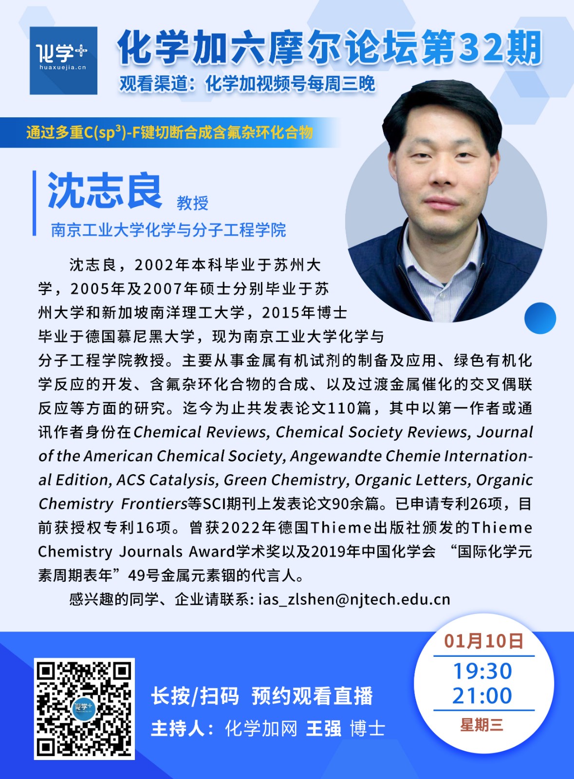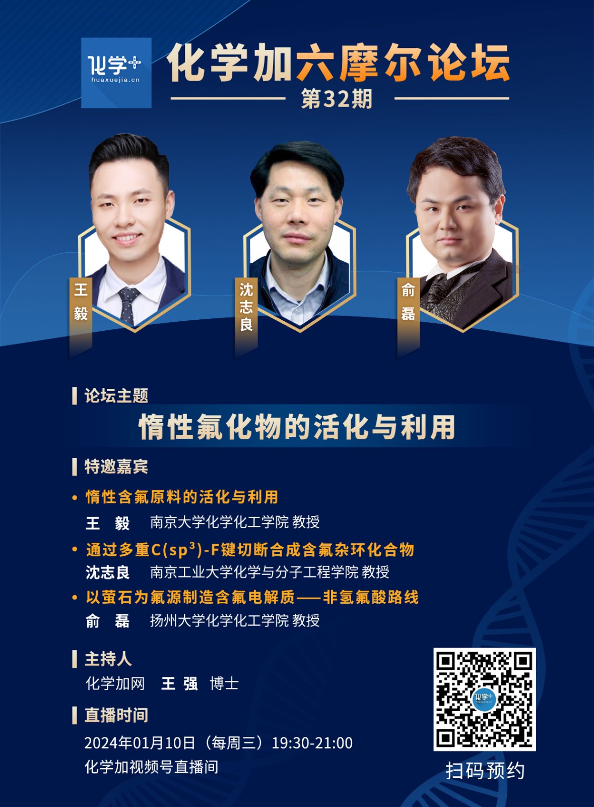 【直播預告】1月10日 | 化學加六摩爾論壇第32期-惰性氟化物的活化與利用:王毅、沈志良、俞磊