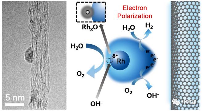 圖2.Rh/SWNTs界面處電極極化效應及其效果示意圖