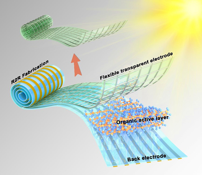由于缺乏上述高性能的柔性透明電極,目前柔性有機光電器件的性能仍大幅度落后于相應的剛性器件。柔性透明電極通常采用干法(如蒸鍍)或溶液處理(如狹縫印刷、納米壓印或電紡絲等)工藝制備。相比于干法制備,溶液處理方法制備柔性電極具有成本低,可大規模“卷對卷”印刷制備等優點,發展潛力巨大。