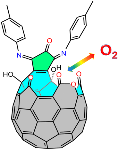 甘良兵課題組的研究結(jié)果表明開孔富勒烯在遞氧材料方面有潛在應(yīng)用價(jià)值。許多醫(yī)療手段,例如組織體外培養(yǎng)、活性氧物種(Reactive oxygen species, ROS)殺菌和腫瘤的光動(dòng)力治療(Photodynamic therapy, PDT)中均需要充足的氧氣供應(yīng),目前文獻(xiàn)報(bào)道較多的遞氧材料主要有修飾的血紅素、碳氟化合物和金屬過氧化物等。開孔富勒烯作為分子納米材料為遞氧材料提供了新的研究方向。