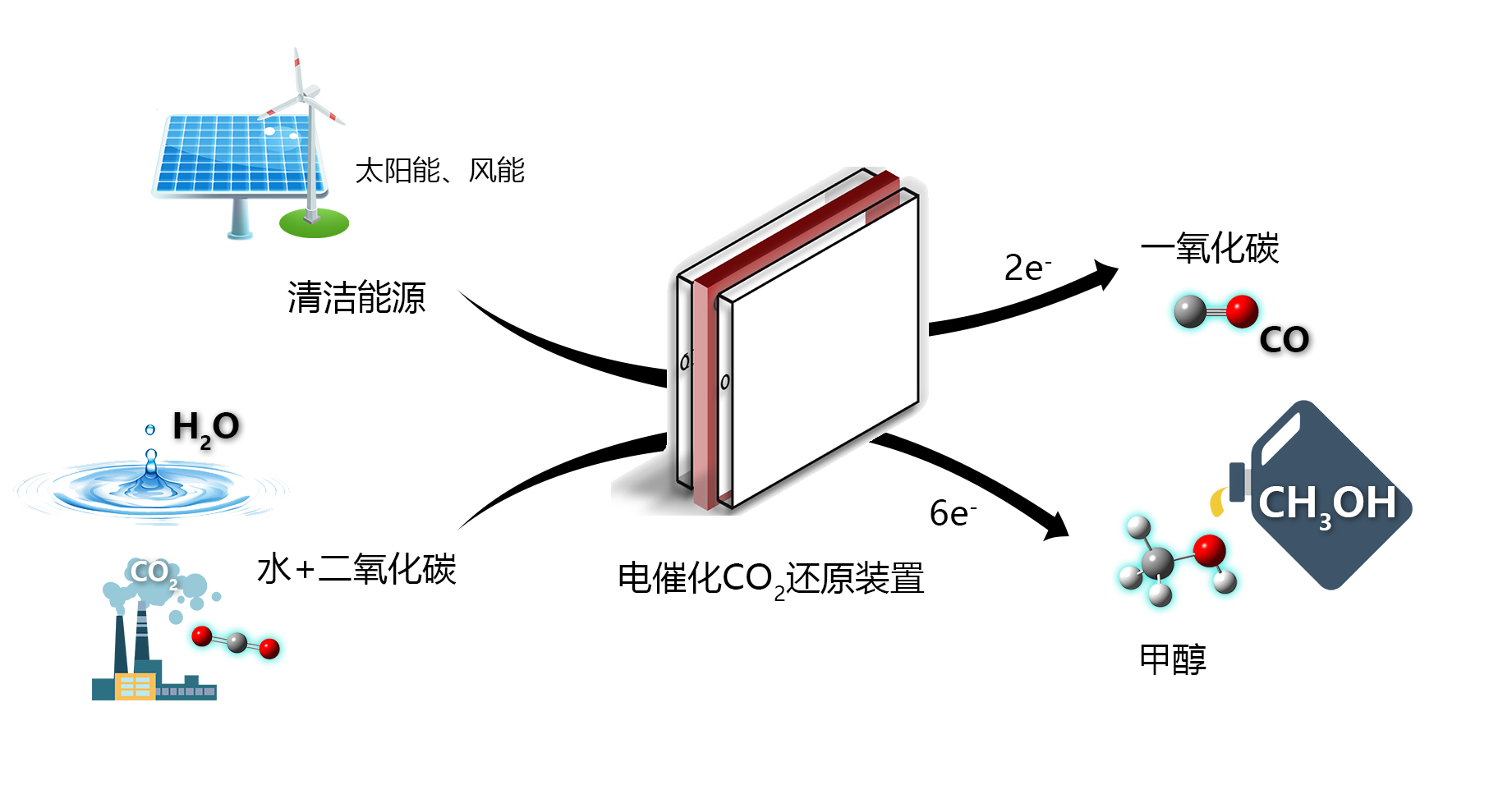當今人類社會對化石燃料的過度使用導致大氣中CO2含量急劇升高,溫室效應日益明顯。因此,降低大氣中CO2的含量及有效地開發(fā)利用CO2具有重大研究意義。利用可再生能源產(chǎn)生的電能驅(qū)動CO2還原是實現(xiàn)化學品和燃料可持續(xù)生產(chǎn)的一種有效途徑,也是一個學術競爭激烈的研究方向。
