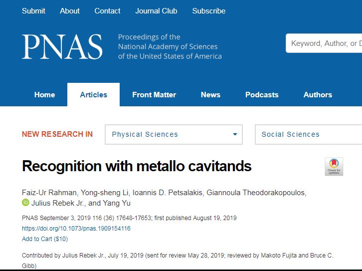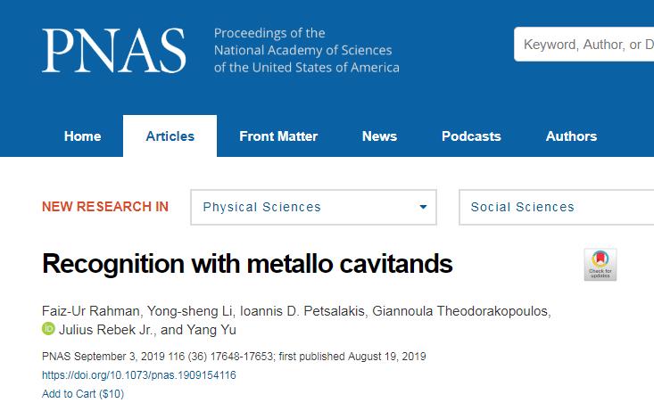 李永生同學參與研究的方向是超分子化學,水溶性杯芳烴的合成及其應用,合成杯狀的大環化合物,探索其在分子識別、化合物分離以及開發新的化學反應方面的應用。李永生同學師從理學院化學系于洋教授和Rebek教授。Julius Rebek教授系美國科學院院士、美國科學與藝術學院院士、瑞典皇家科學院院士、歐洲科學院院士、匈牙利科學院院士,是國際著名的化學家和生物有機化學家。Rebek教授自2016年12月加入理學院上海大學超分子化學與催化研究中心以來,引薦上海市東方學者于洋教授于2017年4月加入上海大學,后相繼引薦意大利Manuel博士、巴基斯坦Faiz博士、印度Venkat博士、南開大學朱玉潔博士和華東師范大學吳乃偉博士加入上海大學理學院博士后流動站,招收碩士生李永生等,迅速組建了一支年輕而極富創造力的國際化研究團隊。