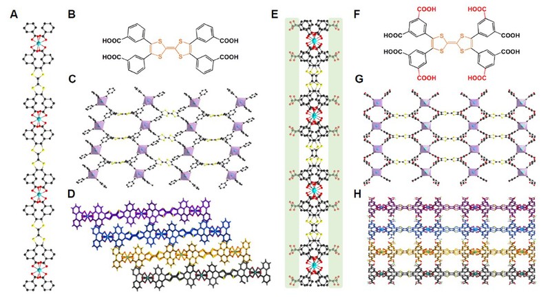 近日,南京大學化學化工學院左景林教授課題組、丁夢寧教授課題組與南京師范大學蘭亞乾教授課題組合作,在導電金屬有機框架材料研究中取得了重要進展。他們開發出一種具氧化還原活性和高質子導電性的新型二維配合物材料,并在該材料中發現了一種基于“面內質子導電/界面贗電容耦合”的新導電機制。相關工作以題為“High Electrical Conductivity in a 2D MOF with Intrinsic Superprotonic Conduction and Interfacial Pseudo-Capacitance”的論文于2020年01月22日在Matter上在線發表(doi: 10.1016/j.matt.2019.12.018)。Matter雜志是Cell Press材料學科的旗艦期刊?;翰┦亢筇K劍、研究生何雯和南京師范大學博士生李曉敏為該論文共同第一作者,左景林教授、丁夢寧教授與蘭亞乾教授為論文的通訊作者。美國西北大學孫磊博士也參與了本課題研究。