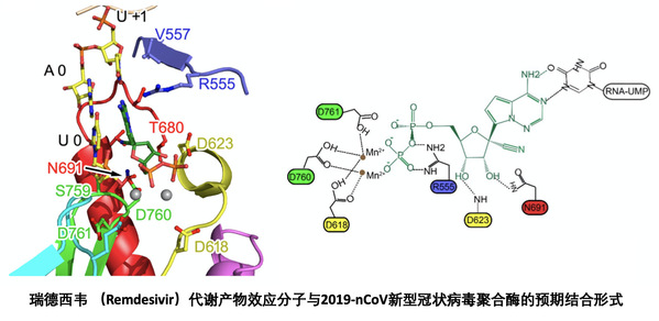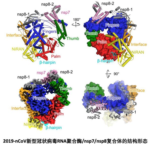 新型冠狀病毒在入侵細胞后,便開始大量復制;而病毒的RNA依賴的RNA聚合酶(RdRp,也被稱為nsp12)在病毒的遺傳物質——RNA的合成過程中起著至關重要的作用。以RNA聚合酶為核心,病毒會巧妙地利用其它輔助因子(如nsp7/nsp8等)組裝一臺高效的RNA合成機器,進行自我復制。RNA聚合酶作為這臺復制機器的核心部件,是最重要的抗病毒藥靶之一。破壞該核心設備的功能,就能阻止病毒的復制,最終達到治療的目的。而瑞德西韋恰恰就是一個靶向RNA聚合酶的前藥,當藥物進入人體,通過代謝后,其最終產物就直接靶向抑制病毒的RNA聚合酶。2020年1月25日,蔣華良院士和饒子和院士領銜的上海科技大學免疫化學研究所與中國科學院上海藥物研究所抗新冠病毒聯合應急攻關團隊,通過藥物篩選發現了30種可能具有抗新冠病毒效用的藥物或活性天然產物,其中就包含瑞德西韋。最近有報道稱,國外醫療機構對一名新冠肺炎重癥患者在同情用藥的原則下使用了瑞德西韋,該患者病情迅速緩解。因此,瑞德西韋被認為是一個在新冠肺炎的治療中頗具前景的臨床藥物。目前,瑞德西韋臨床試驗已在中國開展,由中日友好醫院、中國醫學科學院藥物研究所牽頭,在武漢金銀潭醫院等多家抗疫一線醫院中進行,計劃入組761例患者,結果預計在4月27日公布。但是,由于缺乏新型冠狀病毒RNA聚合酶的三維結構信息,瑞德西韋如何精確靶向病毒RNA聚合酶的機制尚不明確,這是當前針對該靶點開展更有效的抗病毒藥物開發及應用的重要障礙之一。