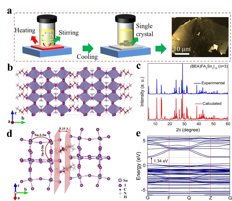 圖1 單晶(BEA)FA2Sn3I10的合成,晶體結(jié)構(gòu)及第一性原理計(jì)算