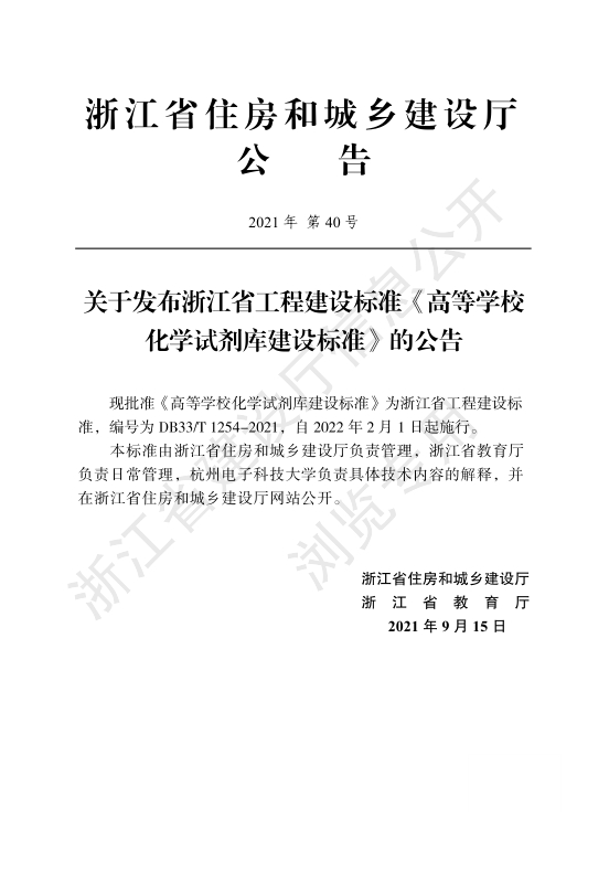 本標準由浙江省住房和城鄉建設廳負責管理,浙江省教育廳負責日常管理,杭州電子科技大學負責具體技術內容的解釋,并在浙江省住房和城鄉建設廳網站公開。