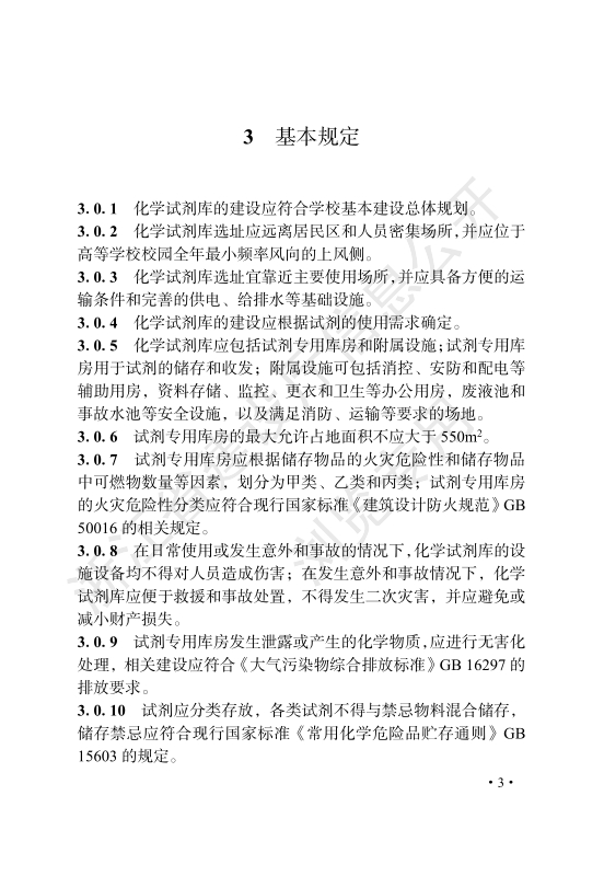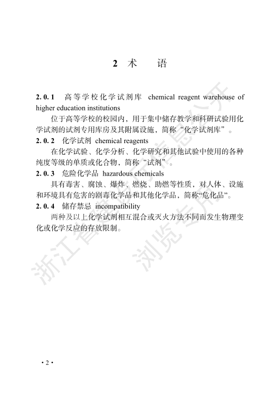 本標準適用于位于高等學校的校園內,獨立建造的化學試劑庫新建項目的規劃、建設和安全管理。