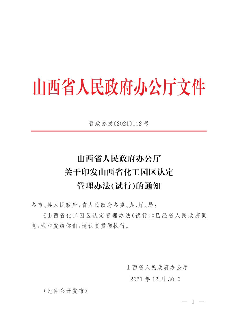 導讀:山西省人民政府辦公廳關(guān)于印發(fā)山西省化工園區(qū)認定管理辦法(試行)的通知