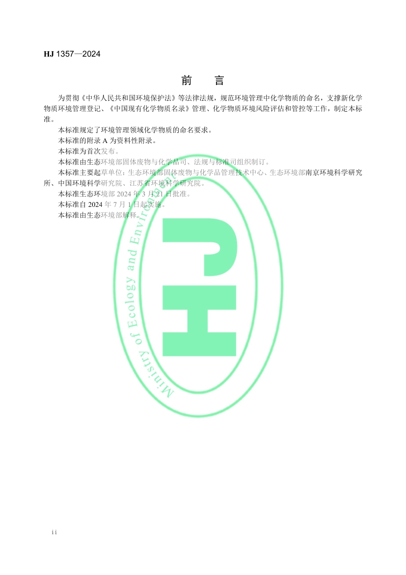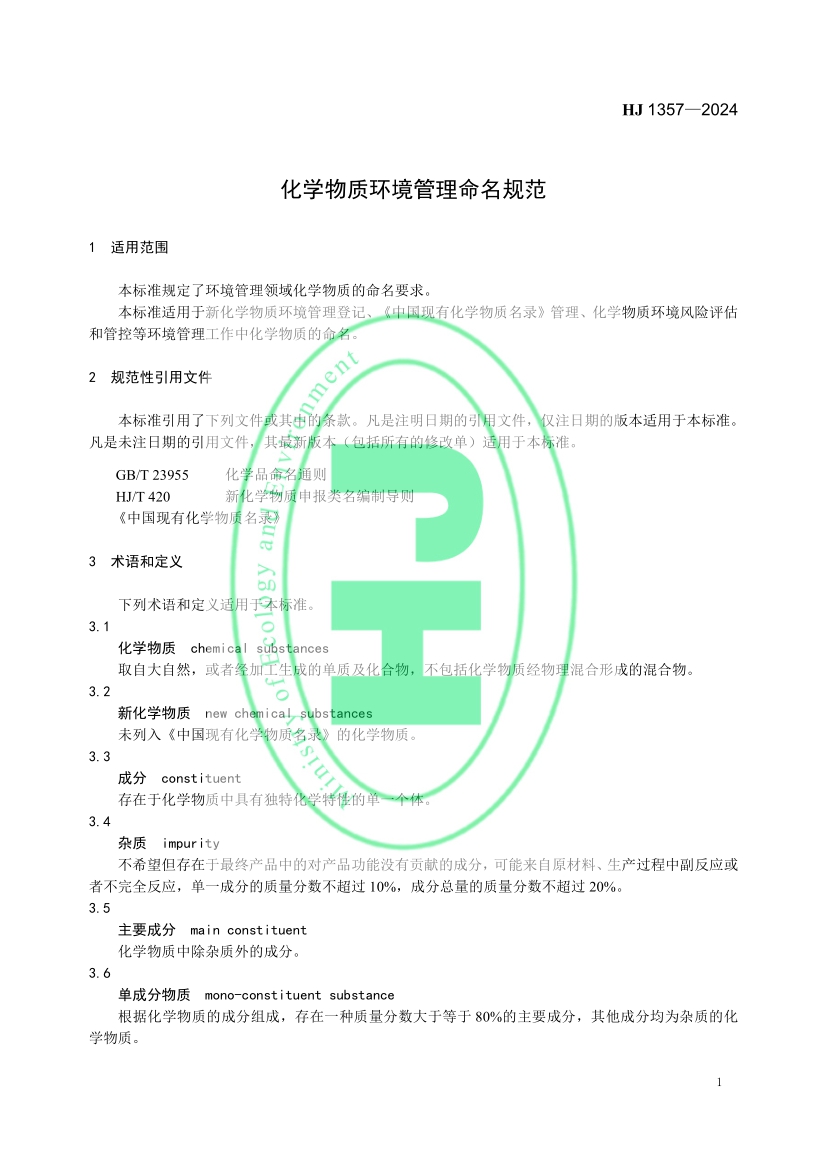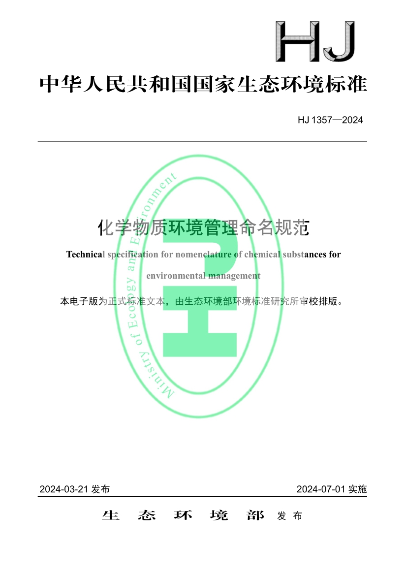 化學物質環境管理命名規范(HJ 1357—2024)