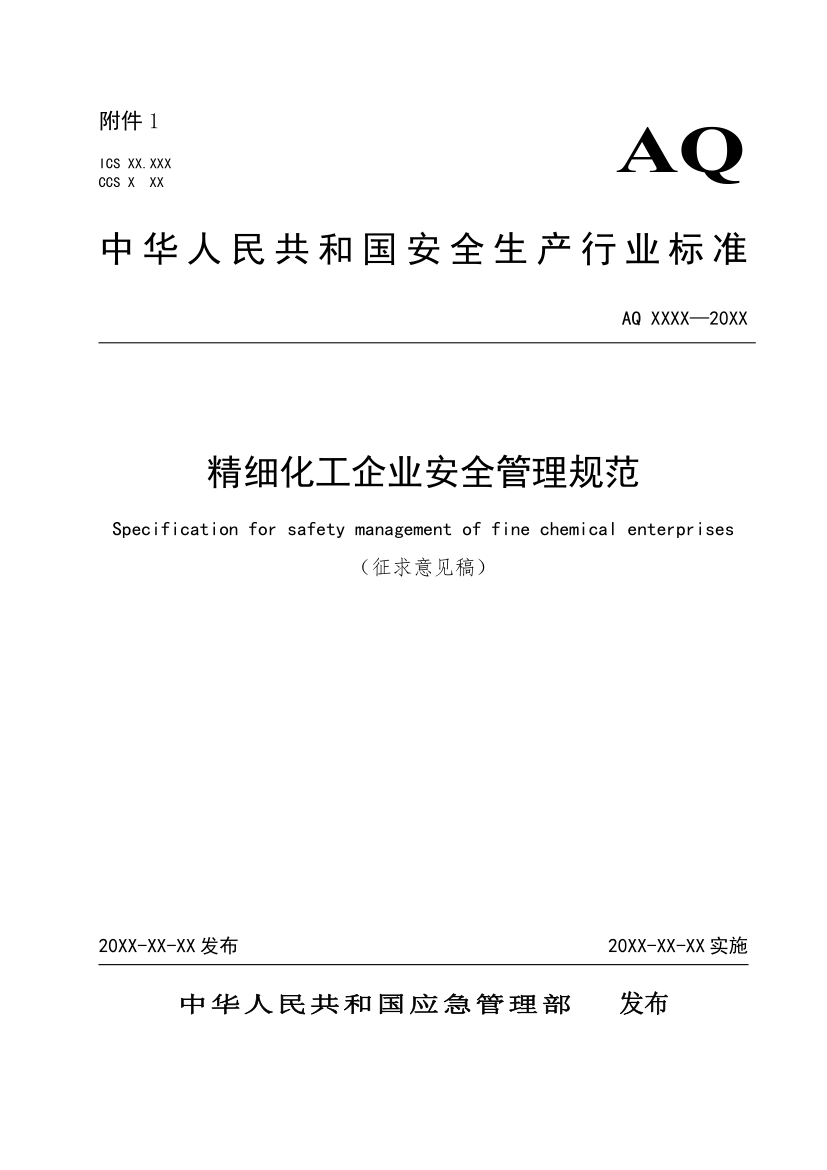 應急管理部發布《精細化工企業安全管理規范》征求意見稿
