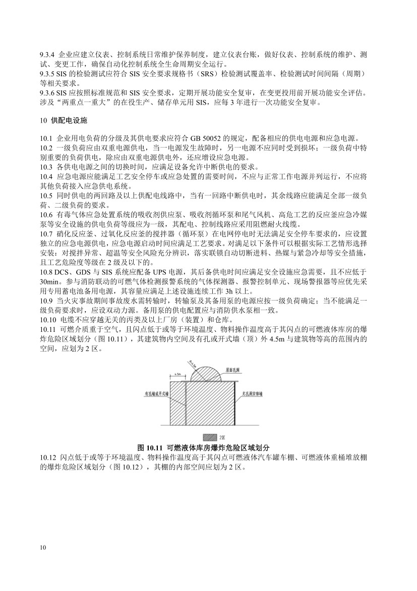 供配電設施章節,對精細化工企業的供電負荷要求進行了規定,并明確了典型裝置、設施的供電負荷等級;對部分特殊場所的爆炸危險區域劃分進行了規定。