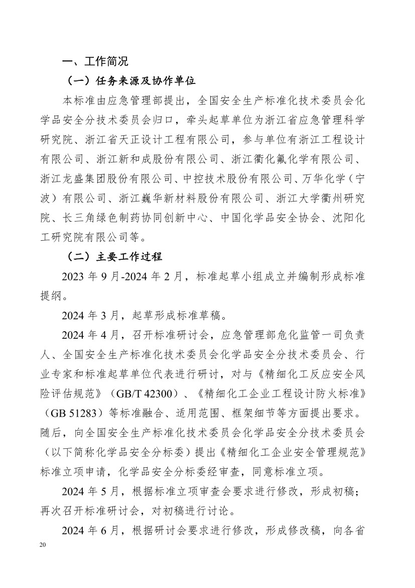 導讀:為全面提升精細化工企業本質安全水平,有效防控重大安全風險,在吸取有關典型事故教訓,認真總結近年來精細化工“四個清零”、高危細分領域專家指導服務和地方監管經驗基礎上,應急管理部危化監管一司組織制定了《精細化工企業安全管理規范》(征求意見稿)和編制說明(見附件1)。