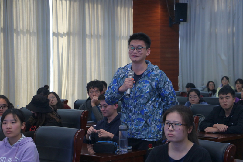 學生在互動環節,與郭旭虹積極進行交流。郭旭虹還就化學工程發展趨勢、學生在求學研究時的困惑等問題,闡述了自己的看法。