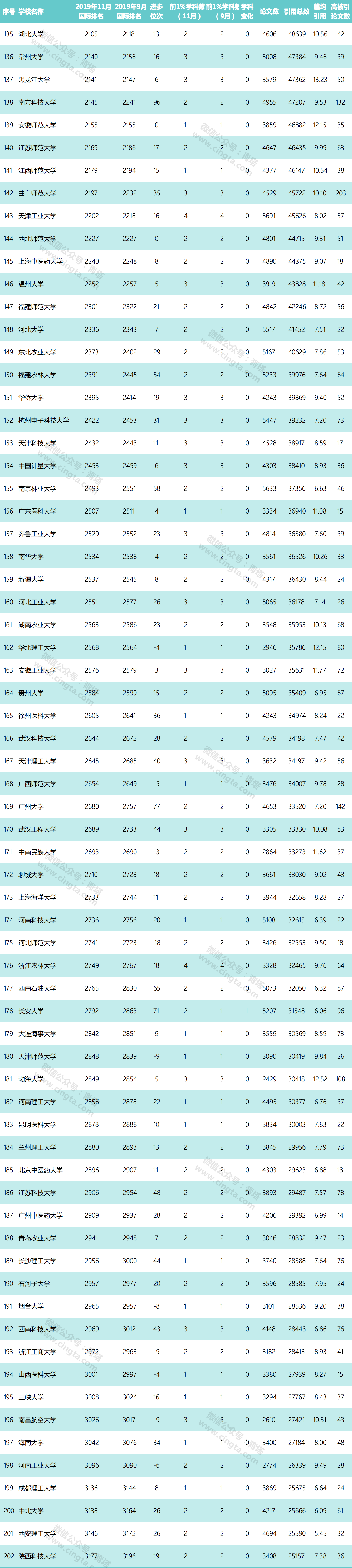 相比9月份,有部分高校新增學科進入前1%,包括吉林大學、華南理工大學、蘇州大學、廈門大學、北京科技大學、上海大學、西北工業大學、江蘇大學、西北農林科技大學、深圳大學、溫州醫科大學、北京工業大學、哈爾濱工程大學北京交通大學、華南農業大學、安徽醫科大學、廣州醫科大學、廣西醫科大學等高校。