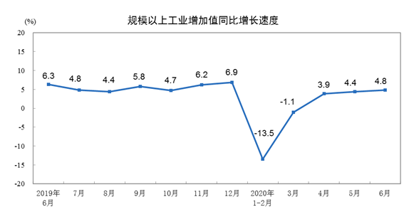 分經(jīng)濟(jì)類型看,6月份,國(guó)有控股企業(yè)增加值同比增長(zhǎng)4.9%;股份制企業(yè)增長(zhǎng)5.0%,外商及港澳臺(tái)商投資企業(yè)增長(zhǎng)4.2%;私營(yíng)企業(yè)增長(zhǎng)4.8%。
