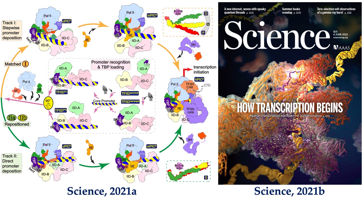 上述成果以2篇研究長文發表于《科學》雜志(Science 372, eaba8490;Science 372, eabg0635),其中一篇被Science雜志選為封面文章,題目為“轉錄如何起始”。