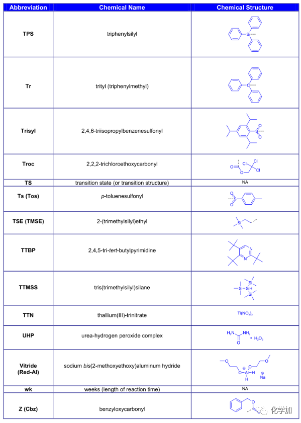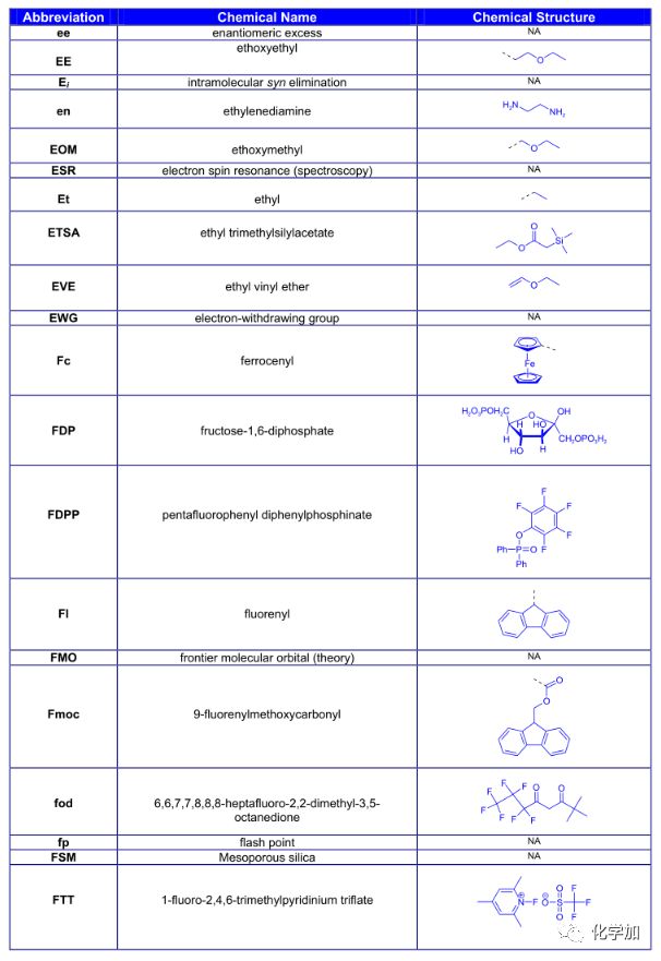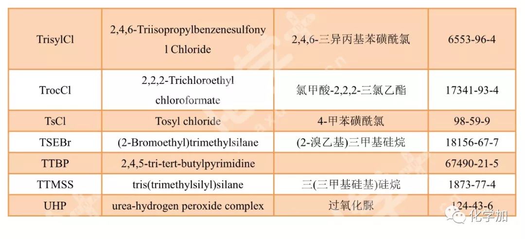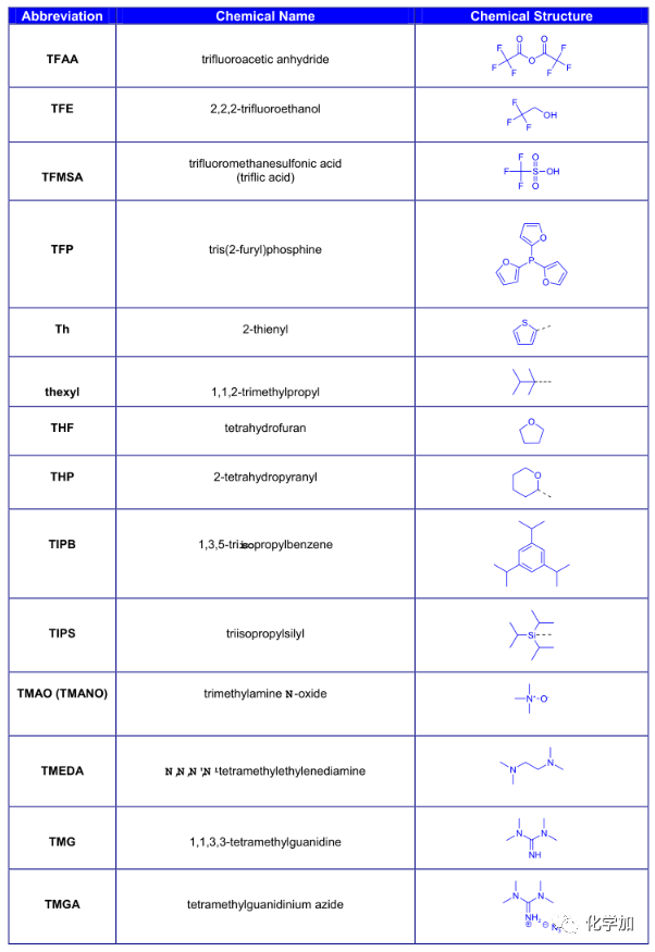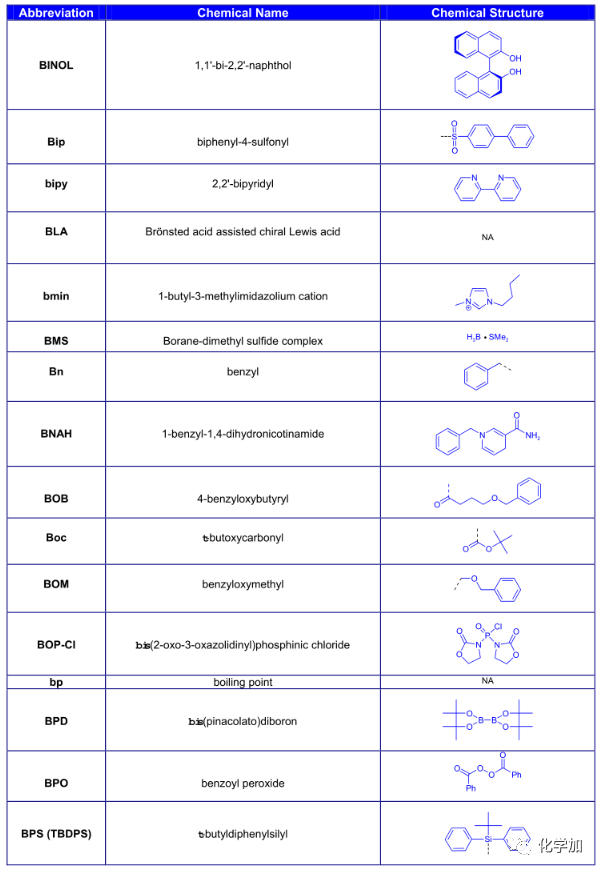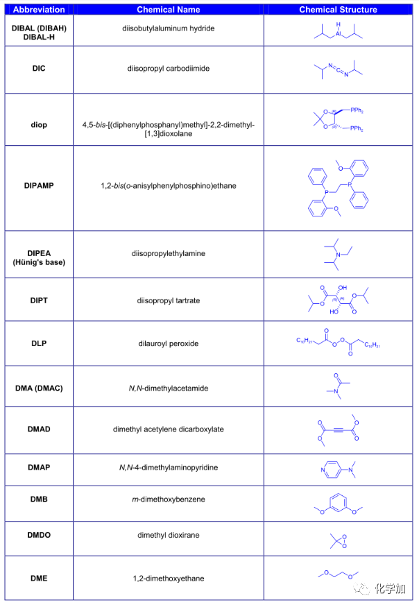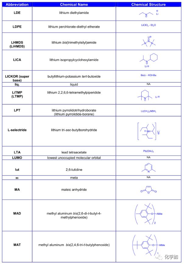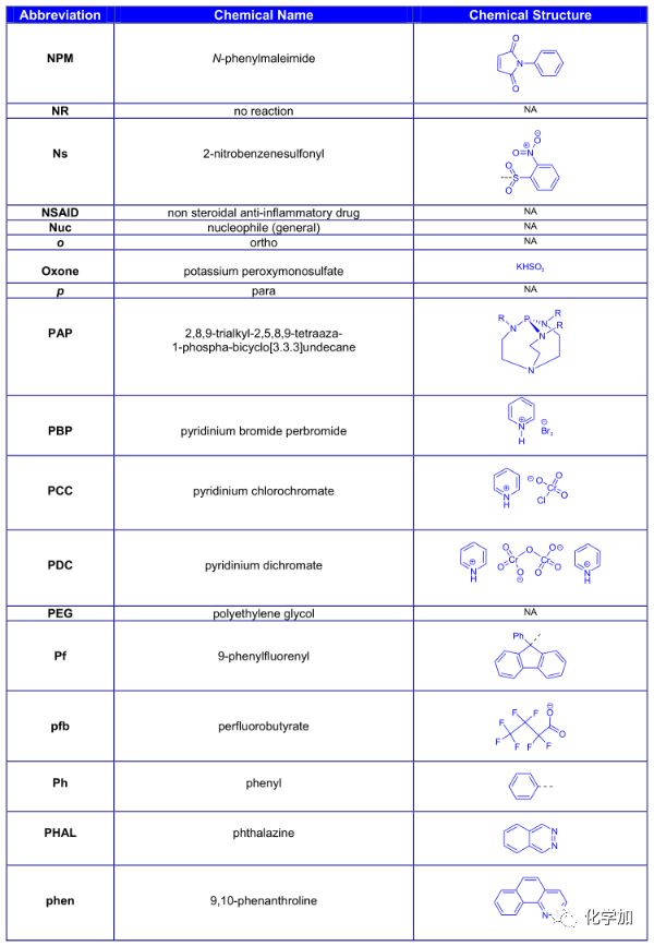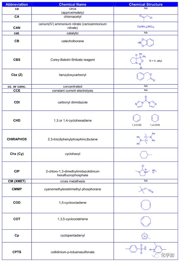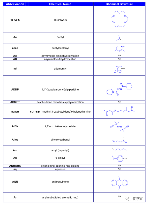 導讀:在有機化學中,我們經常遇到一些英文縮寫,大家都記得多少呢?化學加特別整理了一些縮寫,供大家參考。如發現錯誤,可留言指出。更多化學品相關信息,可點上方小程序,進入百科查詢。