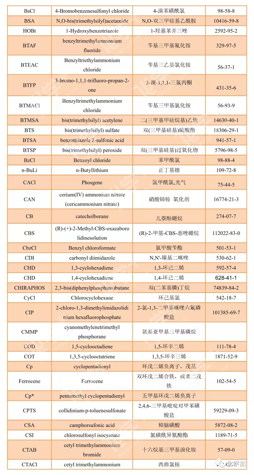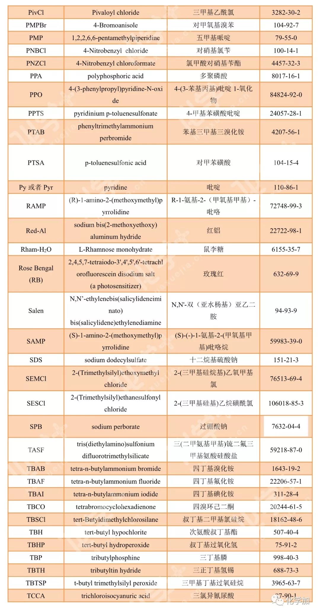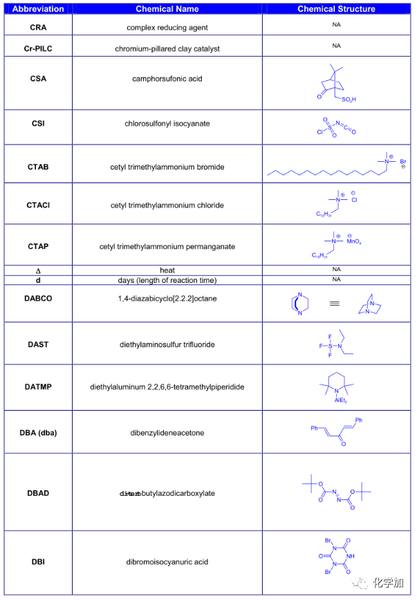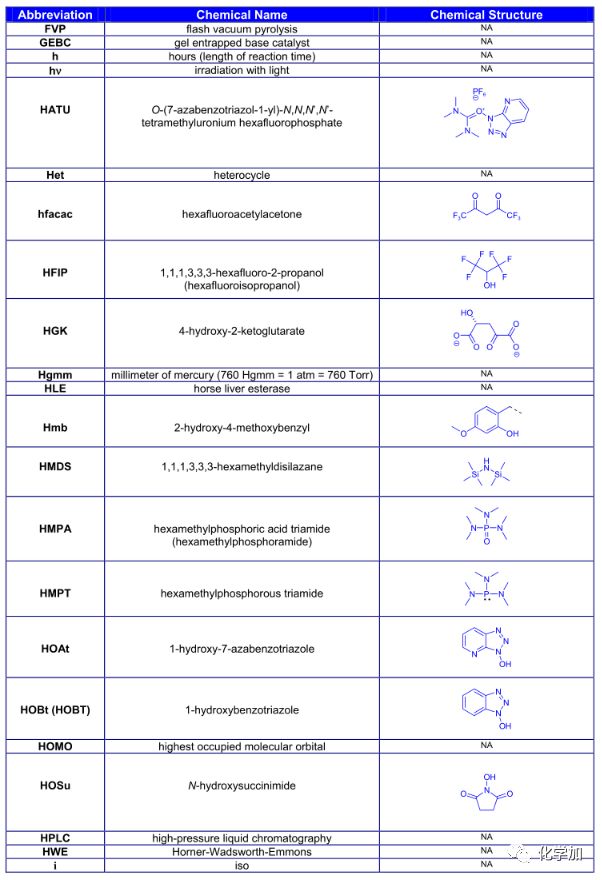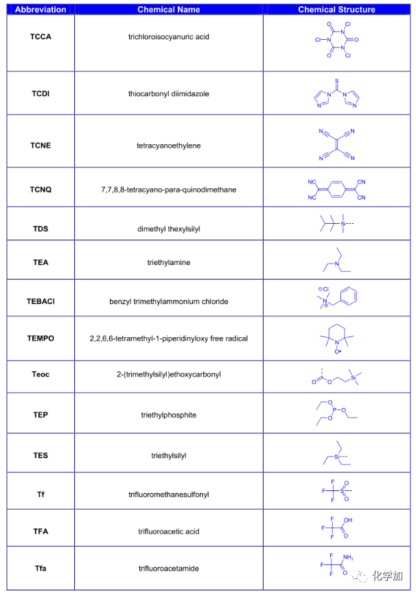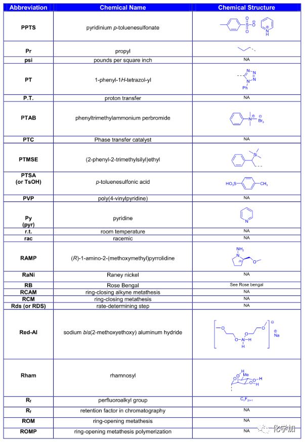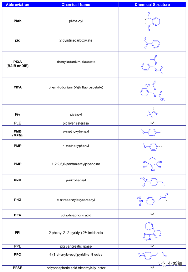 導讀:在有機化學中,我們經常遇到一些英文縮寫,大家都記得多少呢?化學加特別整理了一些縮寫,供大家參考。如發現錯誤,可留言指出。更多化學品相關信息,可點上方小程序,進入百科查詢。