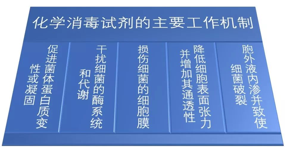 化學消毒試劑能夠影響細菌的化學組成、物理結構和生理活動,從而發揮消毒或滅菌的作用。化學消毒試劑的工作機制主要包括促進菌體蛋白質變性或凝固、干擾細菌的酶系統和代謝、損傷細菌的細胞膜、降低細胞表面張力并增加其通透性、胞外液內滲并致使細菌破裂等。