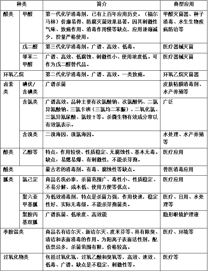 ▲化學消毒劑分類用下面這個表格更直觀一些: